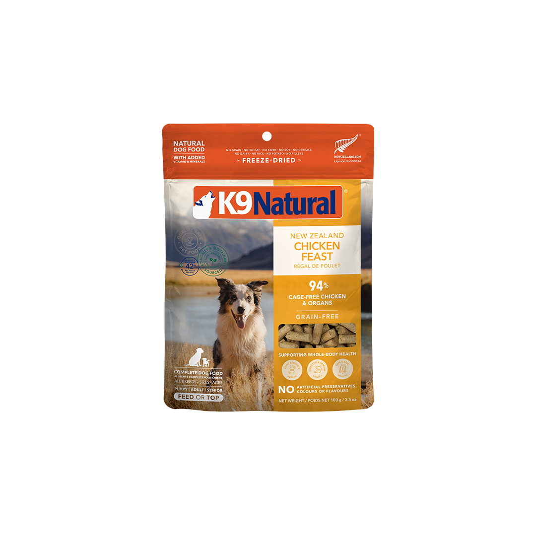Our freeze-dried Chicken Feasts are expertly crafted for whole-body health, and made with 94% cage-free chicken and organs, along with green-lipped mussels, vitamins and minerals